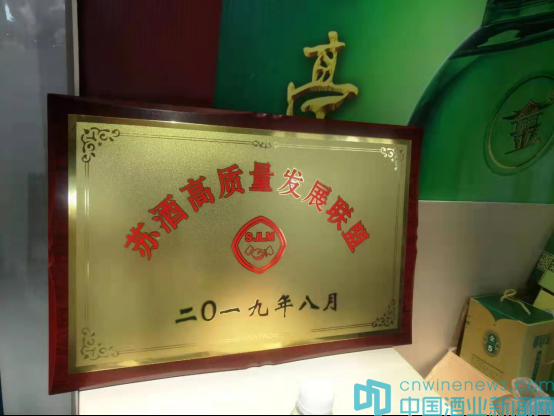 开幕式上举行的“苏酒高质量发展联盟”授牌仪式上,分金亭酒业公司董事长孙敏代表公司接过了“苏酒高质量发展联盟”的牌子。