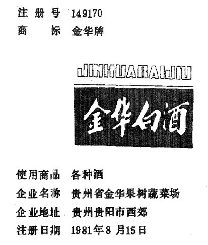 就李先生提出的问题和要求,记者特地到浙江广宇商标事务所了解咨询。在该商标事务所记者看到1981年总第27期“商标注册公告日期1981年8月15日”中有:注册号:149170,商标:金华牌,使用商品:各种酒,企业名称:贵州省金华果树蔬菜场,企业地址:贵州省贵阳市西郊,注册日期:1981年8月15日。