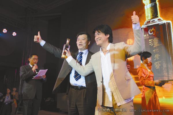 周华健和泸州老窖董事局主席谢明(左二)为泸州老窖特曲老酒纪念60年高歌。