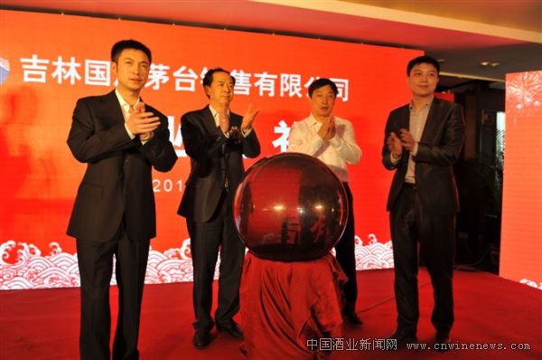 茅台酒东北大区负责人与茅台吉林省经销商联谊会会长等共同为茅台吉林省自营店开业启幕