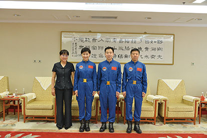 酒会上,北大仓集团总经理隋熙凤与景海鹏、刘旺、刘洋三位航天英雄亲切交谈,并合影留念。隋总经理真诚地发出邀请,约三位航天英雄在方便的时候一同来北大仓集团参观。三位航天英雄对北大仓集团的盛情邀请表示深深的谢意。