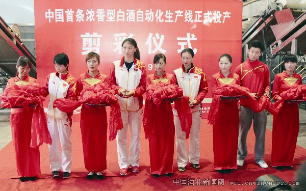 伦敦奥运冠军为今世缘中国首条浓香白酒自动化生产线正式投产剪彩。