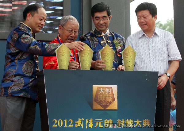 在元帅私藏原酒封藏仪式环节,武陵酒人再现传统的出酒、取酒、鉴酒、封坛、入窖等酿酒流程。中国酿酒大师张洪远先生精心密制的9坛原酒,由18位被誉为“封藏鉴酒帅才”的名人合力封印入窖,并将在恒温恒湿地下酒窖储存三十年以上。庄重、严谨的封藏过程,无不表达出武陵人对古老酿造技艺的传承与发扬,更突显了武陵元帅私藏酒的高贵与奢华。