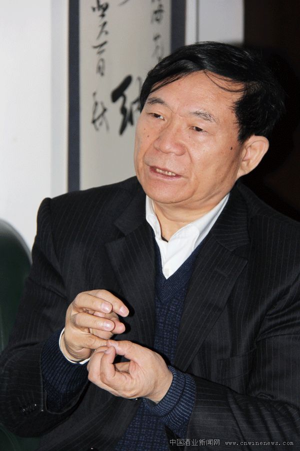 山东颐阳酒业有限公司董事长于海先向记者介绍文登学深厚的文化底蕴。