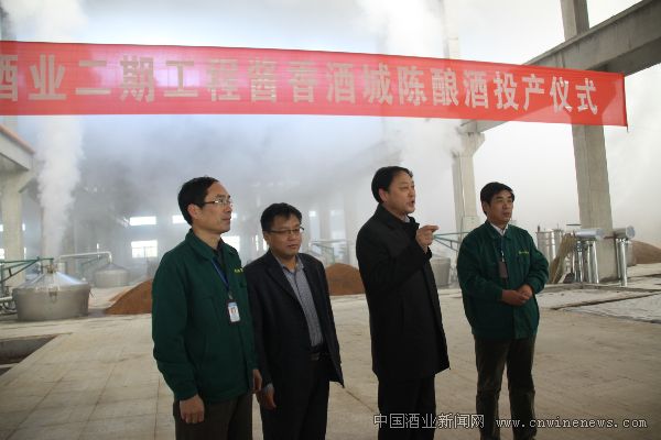 图为云门酒业董事长汲英民在投产仪式上讲话。