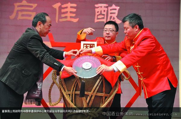封藏大典上,中国酒业协会理事长王延才、国家非遗保护中心领导李新风、北大后EMBA中心院长崔巍、荣宝斋总经理刘尚勇、歌德盈香创始人刘晓伟、国务院发展研究中心企业研究所副所文章来源华夏酒报长张楠、齐丽霞、吴晓波及中国工艺美术大师、国家级首批“非遗”龙泉青瓷传承人徐朝兴作为封藏鉴酒大师上台鉴赏原酒封藏。