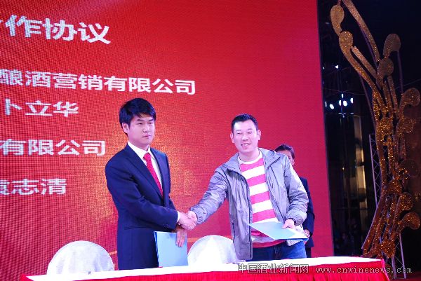 4、陕西西凤6年15年陈酿酒营销有限公司副总经理卜立华当场与南京登财商贸有限公司董事长袁志清签订了5000万元战略合作协议。