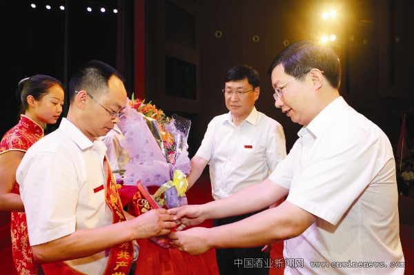 稻花香集团副董事长、总经理蔡开云(右一)为创先争优优秀共产党员颁奖。
