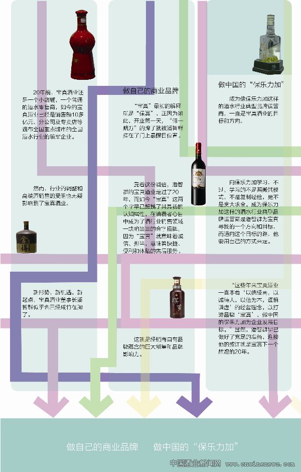 “成为中国的保乐力加,我不认为是大话,从产品来看,我们已经代理了包括白酒、啤酒、葡萄酒等很多知名品牌,从运作模式看,我们有省会城市、二级城市的运作经验,也具备了分公司和驻外办事处的运作能力和经验。”潘智群认为,“宝真要走的路既要有产品代理,也要有产品开发和生产,我们就是要成为品牌营运商,提升宝真的品牌知名度,做中国的保乐力加。”
