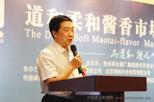 茅台酒厂集团技术开发公司总经理李明灿向现场嘉宾介绍了茅台镇独特的酿酒环境,酱酒的酿造工艺,以及中国酱酒的发展历史及远景展示。他表示,道和牌道和·柔和酱香系列是贵州茅台酒厂集团技术开发公司潜心多年研发的新品,它既继承了传统酱酒的特色与优势,同时还进行了一系列创新,其绵柔醇和的口感也迎合了最新的市场需求与消费趋势。道和酒业作为茅台集团道和白酒的全球唯一战略运营商,拥有非常广阔的推广渠道和先进的运营模式。他相信,随着推广活动的不断深入和推广政策的不断落地,道和牌道和·柔和酱香必将在市场上取得重大突破,贵州茅台酒厂集团技术开发公司与道和酒业之间的合作也会更加紧密。