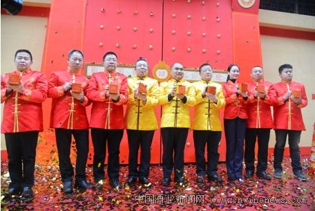 (泸州老窖集团总裁张良、总工程师沈才洪等酿酒大师在原酒封藏入洞仪式上)