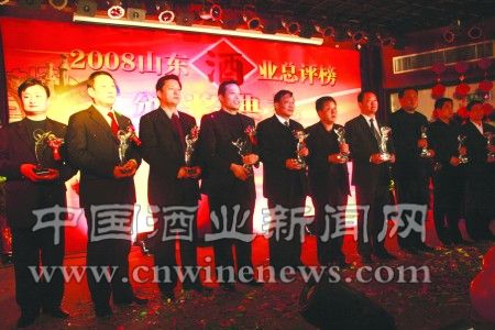 由齐鲁晚报与大众网主办的“2008山东酒业总评榜”评选活动,历时一个半月,现已圆满结束。1月13日下午,在山东新闻大厦召开的“2008山东酒业总评榜”活动颁奖典礼上,共颁出“山东十大名酒”、“山东畅销名酒”、“山东酒业十大风云人物”等八项大奖。省内外的17个酒类品牌获得本届山东酒业总评榜各大奖项荣誉称号,有 22位为山东酒业做出突出贡献的酒界精英获得各项人物大奖。
