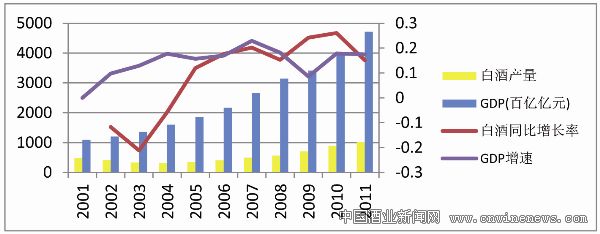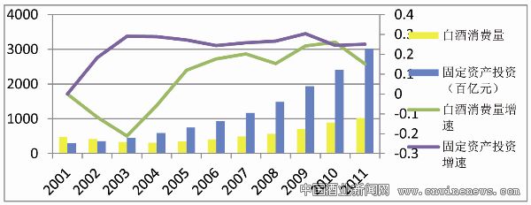 2005年以来,随着消费者人均收入水平的提高,高端白酒奢侈品属性的不断强化及企业对政企、商务客户的深度挖掘,为白酒消费量的上升做了很大贡献。 从2009年开始,销量对销售费用的弹性影响越来越小,营销战略对白酒销量的贡献在减弱。白酒行业毛利率在酒类行业中处于最高水平,引来业内外巨资流入,产能扩充隐存过剩压力。