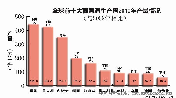 “与去年相文章来源华夏酒报比,今年全球葡萄酒产量下降4%,减少107万千升,至2600万千升。”OIV主席Federico Castellucci表示。2009年,全球葡萄酒产量较2008年下降2.87%。