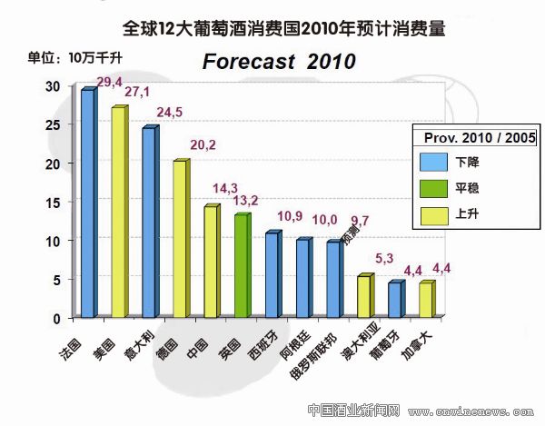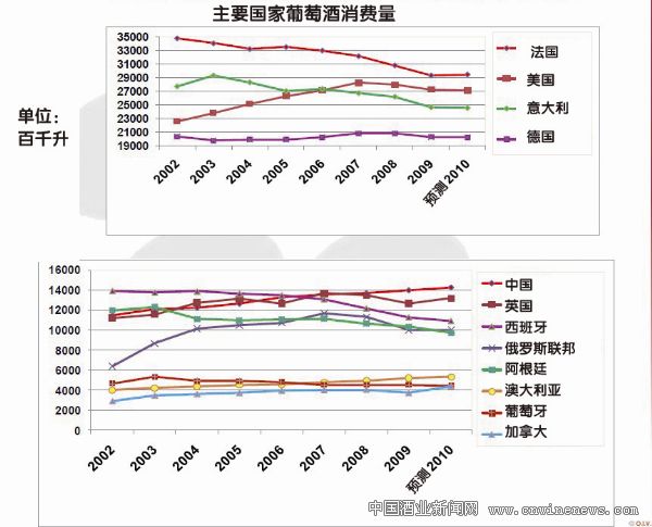 另一方面,全球葡萄酒消费量在2009年下跌3.6%的基础上有所回升,由2009年的2365万千升上升到2380万千升。