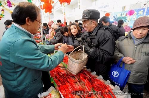 1月8日,众多市民在沈阳食品节展厅参观选购。