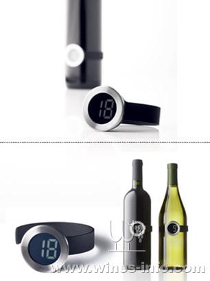 酒温计背后有一扣压式感应器,只要将酒温计扣至瓶身,酒温计便立刻感应到瞬间的酒温状况,可侦测温度范围为摄氏5度 ~ 30度;连续一小时显示后,会自动节电关闭,电池寿命可达 2,000 个小时;显示的酒瓶温度会精确地比瓶内酒温高一度;同时,说明书中也将记载各式红、白酒的最适保存温度,为您提供最完整的参考。备有防震装置,家中有小孩触碰也不怕,而且体积小巧,放在家中任何一个角落也可。