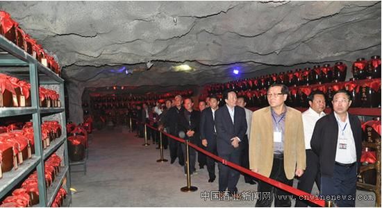 封藏大典结束后,与会领导、白酒专家及其他嘉宾一同参观浮龙湖洞藏酒基地