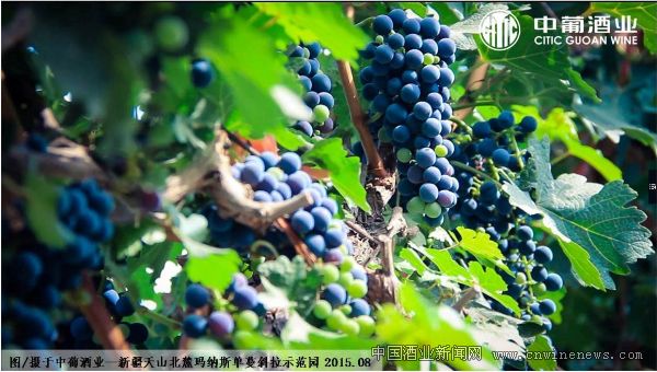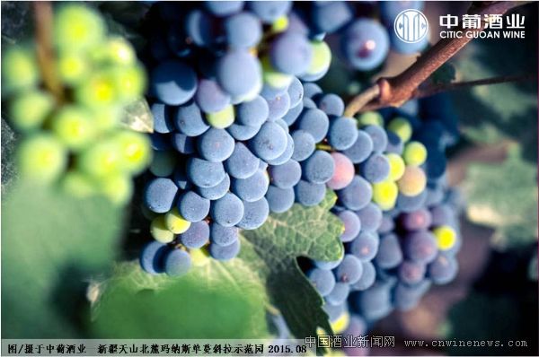 这是位于新疆天山北麓玛纳斯县的中信国安葡萄酒业的葡萄园,酿酒葡萄已经进入了“转色期”。转色期,顾名思义就是葡萄的颜色正在转变,是葡萄进入成熟期的标志,就像“女大十八变”一样,它们马上就要“长大”啦。此时你会发现,有的葡萄在变红,有的只是变成更加透亮的黄色,没错,转色期就是区分红白酿酒葡萄的一个指标。