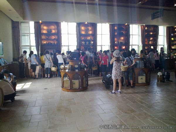 在酒城生态停车场,24辆大巴车在酒城专人的调度下,整齐划一的停靠在生态停车场内,景象蔚为壮观。统一身着海魂衫的游客们,在各自讲解员的讲解带领下,纷纷深深地被弥漫欧式风情的庄园建筑、生机盎然的葡萄公园、神秘的欧式酒窖、现代化的酒庄酒生产线、专业的品酒文化所吸引,同时也对张裕积淀百年的浓厚酒文化产生了浓厚的兴趣。在酒城之窗,琳琅满目的上千种张裕各大酒系名品、个性化专属酒、独具特色的酒城纪念品激发了游客强烈的购买欲望,在景区停留长达三个半小时内,游客们真正地体验到了购