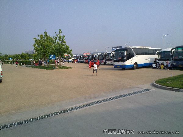 6月26日下午, 1000余人次的旅行团来到了张裕酒城,随着第一辆旅游大巴的到来,正式拉开了张裕酒城此次参观接待的序幕,紧接着其他23辆大巴依次有序地抵达了张裕酒城。
