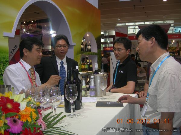 浙江宁波保税区布家友联酒业有限公司以推广、传播葡萄酒文化为己任,经常举办、参与各种形式的品酒会、展览会,向广大葡萄酒爱好者普及葡萄酒知识,展示品牌文章来源华夏酒报形象。图为公司领导在为客户介绍产品情况。