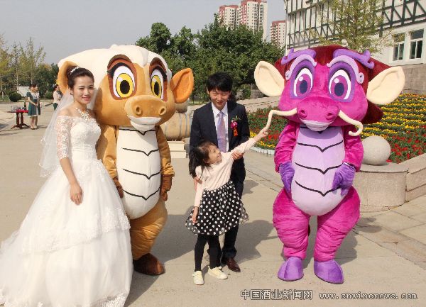 十一当天正值婚庆高峰,启动仪式上,酒城现场随机邀请新人上台,在现场游客的祝福下,共饮寓意长长久久的新酒交杯酒,让所有人一起见证了他们的幸福与浪漫时刻。当天近50对新人到酒城取景拍摄,目前张裕酒城除作为新人婚纱照和婚礼当天取景拍摄基地外,婚庆定制服务立足主题策划、场地、餐饮等优势资源的基础上,着力打造一站式庄园主题婚礼品牌,已先后承办多场集体婚礼和主题婚宴。