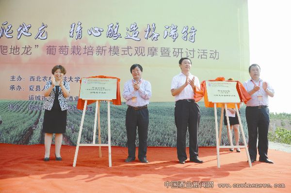 为了进一步总结和推广“爬地龙”栽培模式,8月21日,由西北农林科技大学主办、运城市夏县县委县政府、格瑞特酒业有限公司承办的中国埋土防寒区“爬地龙”葡萄栽培新模式观摩暨研讨活动在夏县召开,西北农林科技大学副校长李华,河北林业科学研究院院长、中国农学会葡萄分会副会长刘俊,中国食品工业协业葡萄酒、果酒专家委员