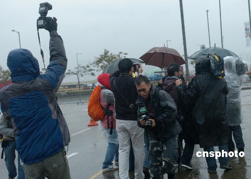 资料图:二零零八年一月三十日,众多新闻媒体的记者冒雨在澳门终审法院门口采访。澳门终审法院对“欧文龙案”作最终宣判:前运输工务司司长欧文龙被控受贿、清洗黑钱、滥用职权等罪合计判处有期徒刑二十七年,罚款二十四万元并没收财产。 中新社发 史利 摄