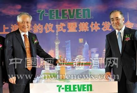 统一企业集团总裁林苍生(左)与7-Eleven 执行副总裁兼营运长朝仓正昭共同主持上海7-Eleven 启动庆祝仪式。