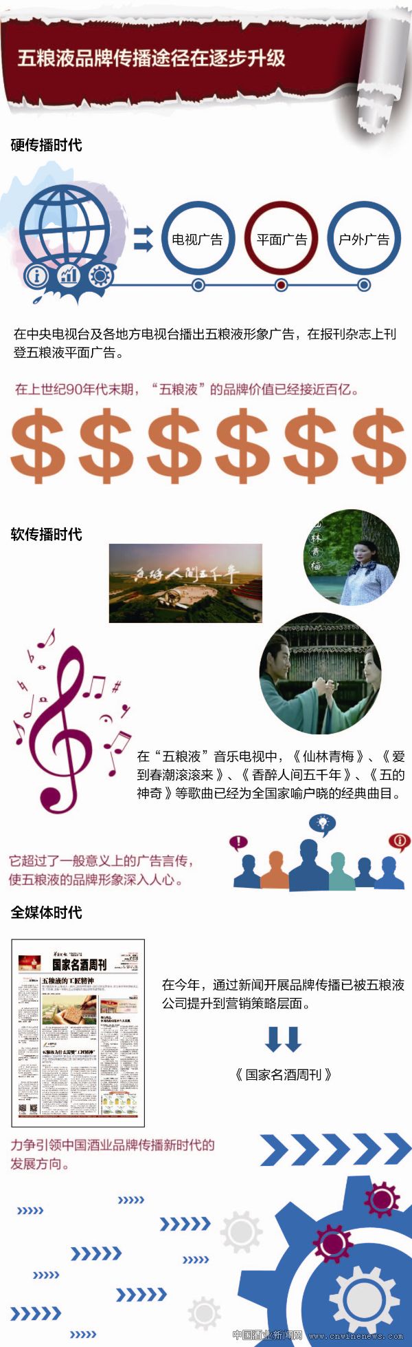 在“五粮液”的品牌价值飞速提升的过程中,其产品的质量自不必说,成功的品牌传播战略也是成就“五粮液”这一品牌的关键所在。