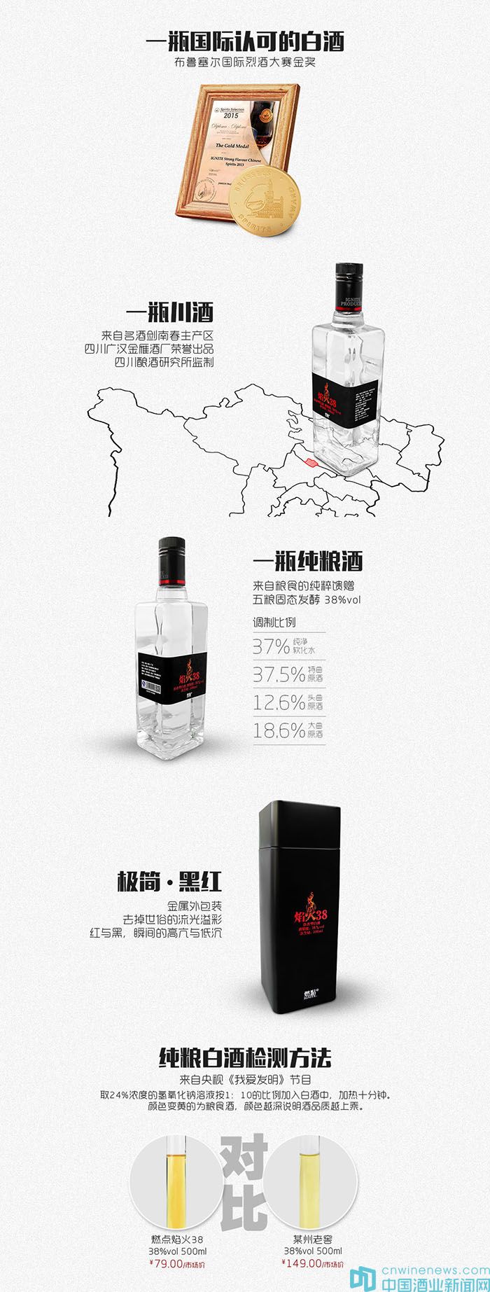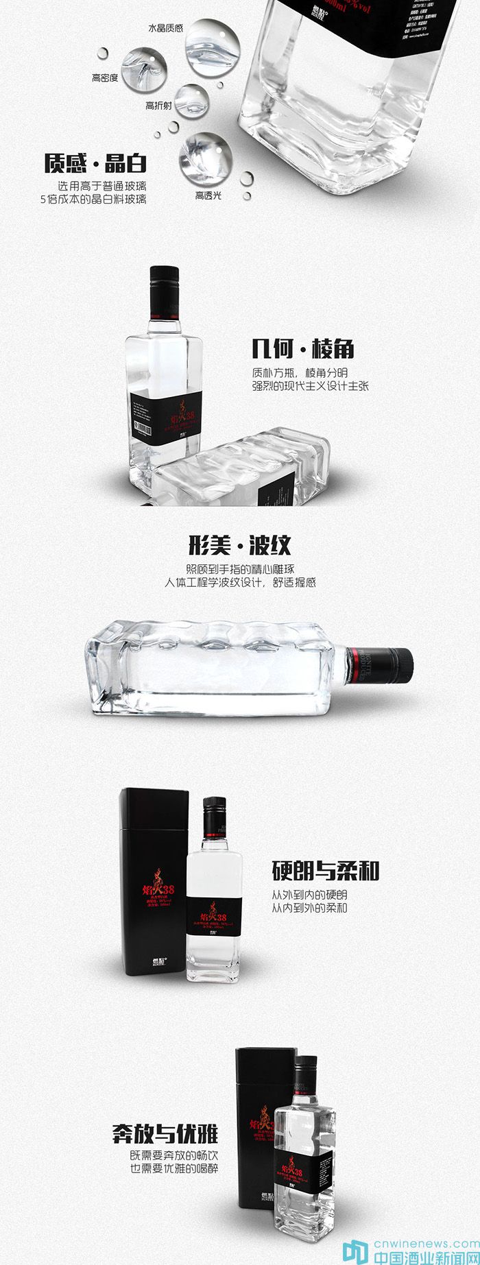 在这样一片红火的时候,燃点白酒今日在购酒网首发了今年的重磅新品——燃点焰火38。这款38度的浓香型白酒秉承了燃点一如既往的设计美学,极简的黑红配色和水晶级玻璃的出色材质,以及极富设计诉求的人体工程学结构,让这款看上去有些性冷淡的产品闪耀着一丝与众不同的人文光辉。在购酒网首发上线短短1个小时内,燃点焰火38就已有159单的出色销量。