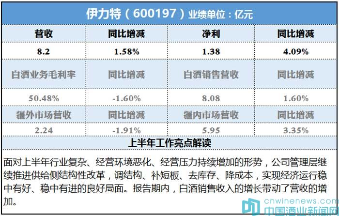 伊力特上半年实现营收8.2亿元,净利增长4.09%