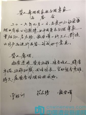 9月1日,“酱人席”酒国家级专家鉴定会在成都举行,由曾祖训、庄名扬、赖登燡三名专家组成的鉴定组对“酱人席”酒进行了认真、严谨的品评,三位专家对“酱人席”酒给出了高度评价:“微黄透明、酱香幽雅、陈香怡人、醇厚丰满、幽雅细腻、回味悠长、空杯留香秀雅、持久,属酱香型酒经典风格。”
