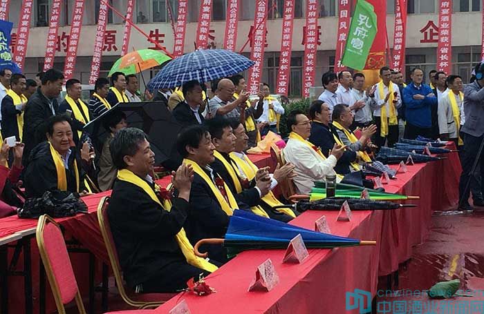 会议第二板块在孔府宴西厂区广场进行,这是此次会议的重头戏,与会嘉宾400余人,气氛隆重而热烈,在激情酒鼓的表演后,孔府宴酒业公司总经理陈永茂对孔府宴的发展愿景进行了阐述,他强调:“面对复杂多变的行业形势,要以变应变,充分发挥儒家文化强大的号召力,挖掘鱼台县的特色优势,将中国地理标志保护产品鱼台大米以及中国三大野生红莲之首的济宁红莲充分融合,创造性的推出中国首个公开发布的荷香型白酒,这一观点引起了大家的极大共鸣。”
