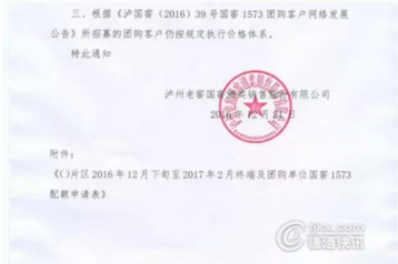 三、根据《泸国窖<2016>39号国窖1573团购客户网络发展公告》所招募的团购客户仍按规定执行价格体系。