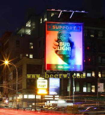 纽约街头上的百威淡啤广逛也抹上彩虹,力挺同志不遗余力。