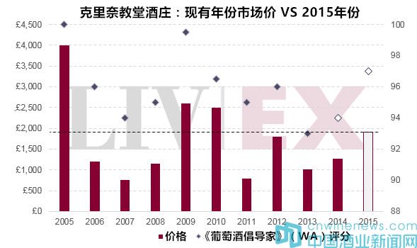 由上图可见,近10年来,克里奈教堂酒庄每一年的期酒价格波动较大。值得注意的是,除了2009以及2010年份外,2015年份成为该酒庄最昂贵的年份。