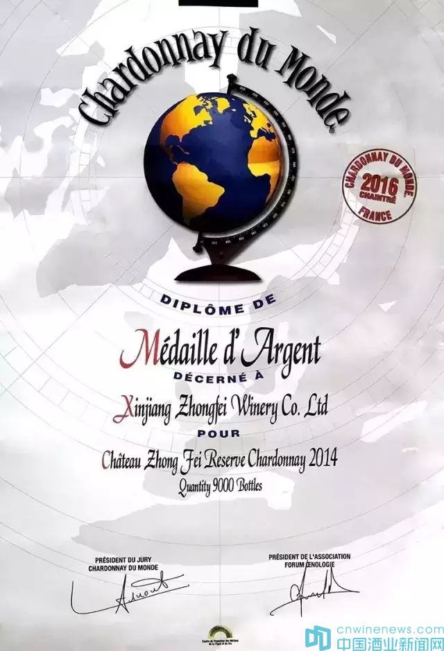 近日,在世界最着名的霞多丽葡萄酒赛事——2016年世界霞多丽大赛中,新疆中菲酒庄2014霞多丽干白葡萄酒夺得银奖。