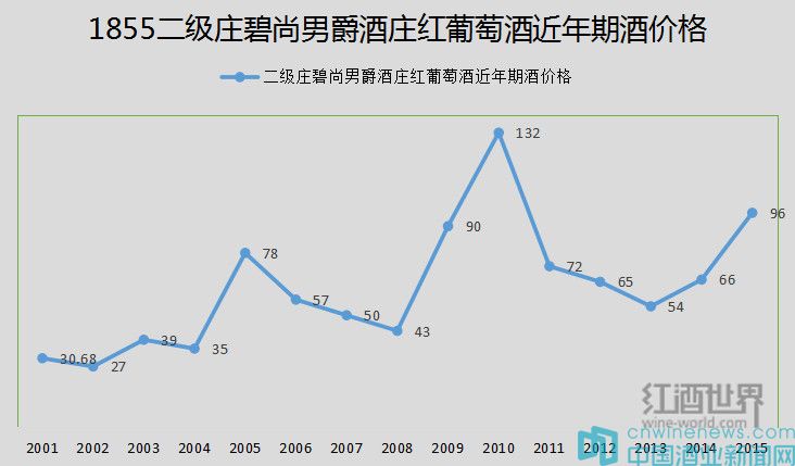 与往年相比,碧尚男爵2015年的价格仅低于其2010年的132欧元/瓶,但与2014年的66欧元/瓶上涨了45.45%。
