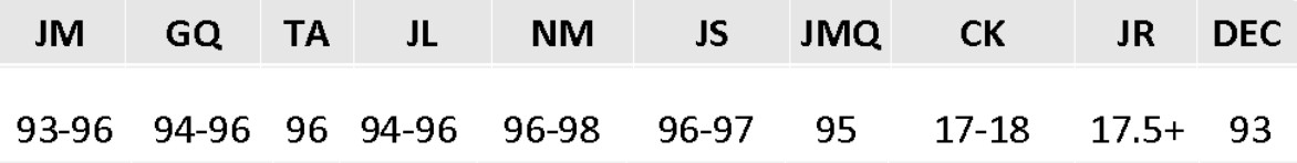 上图为2015年份碧尚男爵酒庄红葡萄酒获得的评分,各字母缩写所代表的意义如下: