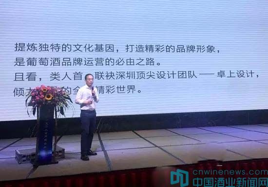 全国著名酒品形象设计大师武宽夫对类人首酒庄、获奖酒的品质、外观向来宾进行介绍、讲解。