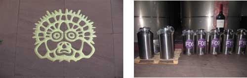上午9点,类人首酒庄总酿酒师吴鸿福先生和酿酒师吴瑕女士及其他酒庄工作人员十分热情接待了队员们。刚进门,大家的目光都被类人首的注册商标吸引了。吴瑕女士介绍道:类人首原形为著名的贺兰山岩画,十二根眼睫毛代表一年的十二个月份、二十四根光芒四射的线条则代表中国文化的传统节气。整体设计风格都散发着浓浓的西夏风情、丝路神韵。