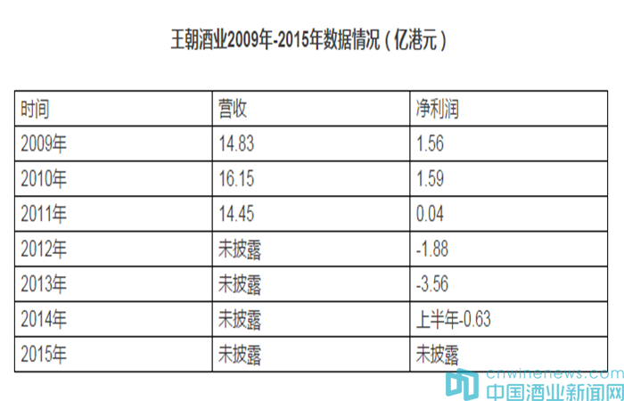 随后的几年里,王朝酒业继续保持着高增长势头,2010年达到最高峰的,年销售额16.15亿港元,净利润1.59亿港元。