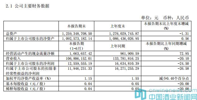 净利润下降24.5% 葡萄酒业务板块未做详细说明