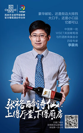 李晨光是中国第一批WSET四级专家,在微电影《傲骄红酒男》中,讲述了他在伦敦学习葡萄酒期间用三年半品尝两万款酒的经历。他希望中国葡萄酒能真正走向世界,而醉诗仙正是这样一款给国产葡萄酒“长脸”的酒。一次偶然盲品接触到醉诗仙,便让李晨光惊喜不已。