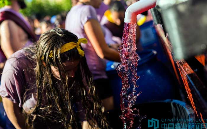 西班牙“葡萄酒之战”狂欢节开幕 民众着白T恤互相泼酒庆祝
