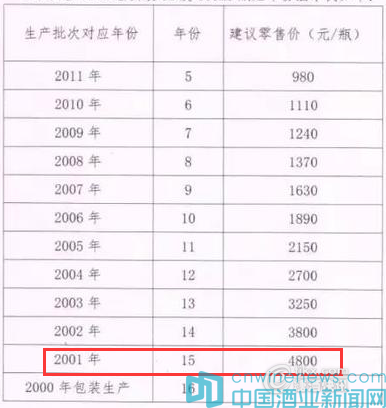 与之前的通知相比,2017年1月4日下发的通知有着两大不同。第一,首次将2012年产的产品纳入了年份酒行列,2001年产品建议零售价上涨1000元;第二,其他规格的年份酒也首次执行年份酒的价格体系。