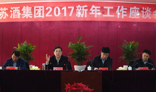 会上,集团董事局主席张雨柏首先向集团全体同仁送上新年的祝福,并用“增长”和“蓄势”两个核心关键词概括总结了公司2016年的工作成绩,指出2016年是公司“增长”与“蓄势”的双修兼得之年,其中价格、极致和创新三个方面工作最能体现“蓄势”。关于2017年工作,张雨柏作了主题为“走三步,练六力,再谱苏酒新篇章”的重要讲话。