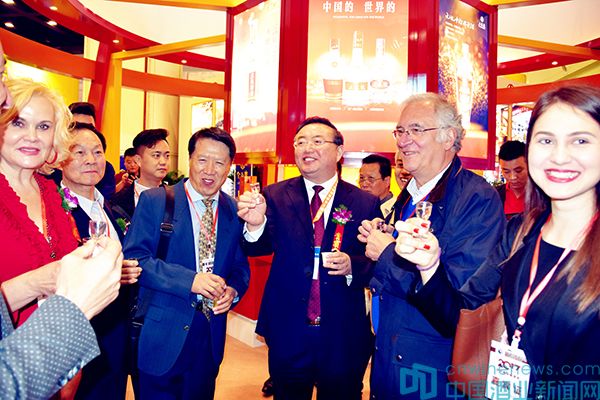 在白酒行业,五粮液毫无疑问是“大佬级”的品牌企业,记者在五粮液展区看到,五粮液展厅位于展区(T1)的显眼位置,走近展厅品鉴区,浓香四溢的酒香吸引前来品尝的嘉宾啧啧称赞。展厅透露着五粮液悠久的历史文化底蕴与“五粮酿造”的特有魅力,产品陈列更是别具一格。开幕式当天,河南省贸促会部长雷保平、澳大利亚商会总代表魏晓亚、英国威尔士政府重庆代表处总代表马青云、智利环球酒业总裁丽莎·丹海姆,以及厦门、大连、甘肃、陕西、湖南酒类协会相关领导来到五粮液展区视察。外国使团成员在品尝五粮液美酒后,伸出大拇指,连连陈赞。